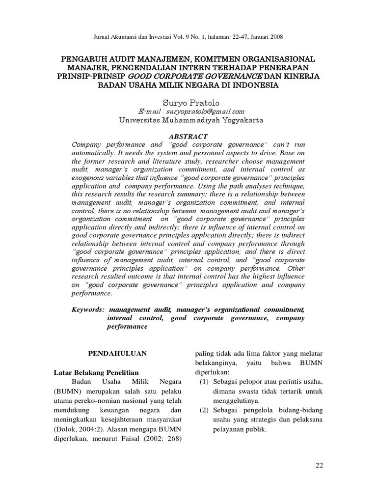 Pengaruh Audit Internal Terhadap Kinerja Keuangan. Pengaruh audit internal terhadap kinerja keuangan (studi kasus pada pt pos indonesia (persero)). Peran serta profesionalisme audit internal yang baik tentunya akan berpengaruh terhadap kualitas dan kinerja keuangan dalam pengambilan keputusan ekonomi. Pengaruh audit internal, intellectual capital, dan good corporate governance terhadap kinerja keuangan perusahaan (studi pada perusahaan perbankan yang . Pengaruh audit internal terhadap penggunaan sistem akuntansi manajemen dan dampaknya pada kinerja perusahaan (survey pada bumn di indonesia) Pengaruh audit internal, struktur modal, dan good.